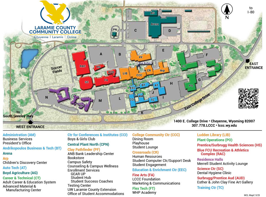 Maps and Campuses Maps for other Campuses and Outreach Centers: Laramie Campus - Laramie | Eastern Laramie County - Pine Bluffs Main Campus - CheyenneCheyenne Campus Map Print Version View/Print larger map (PDF)