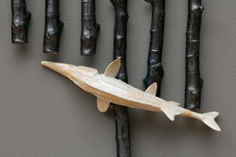 The work draws inspiration from Haydon’s time spent in wild landscapes and her collaborative fieldwork with endangered species, including particularly impactful experiences learning about sturgeon. Her sculptures reference both delicate and enduring elements in nature, with a focus on how emotional investment in the natural world can lead to greater stewardship and understanding.